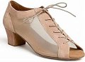 A stunning 2 inch Cuban heeled Practice shoe in cream and beige from Ray Rose ,such a versatile shoe.