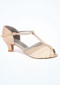 The Emerald is a sophisticated and stylish ladies social shoe, with a shimmering ruched vamp, a contrasting suedette T-bar and back piece and a closed toe. The lower heel and ankle strap featured on this shoe adds comfort and security while the shimmery vamp will keep you looking glamorous on the dance floor.